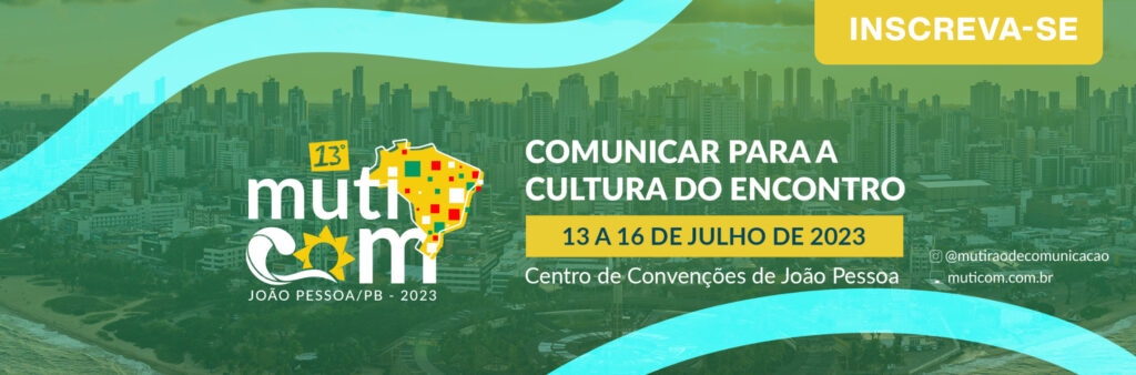 Estão abertas as inscrições para o 13º Mutirão Brasileiro de Comunicação, que acontece de 13 a 16 de julho, no Centro de Convenções de João Pessoa, na Paraíba. O tema desta edição é “Comunicar para a Cultura do Encontro” e os interessados podem participar de forma presencial, ou acompanhar algumas atividades de forma remota. Clique aqui para se inscrever.